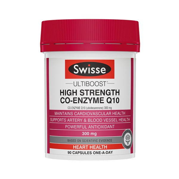 Swisse Ultiboost High Strength Co-enzyme Q10 is a premium quality formula to help maintain cardiovascular system health, support artery and blood vessel health, and provide powerful antioxidant support.